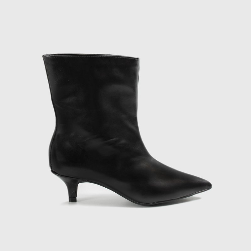 Essencial e elegante. A bota possui cano curto com design liso e minimalista, aposta no bico fino para alongar a silhueta e trazer sofisticação imediata ao look.