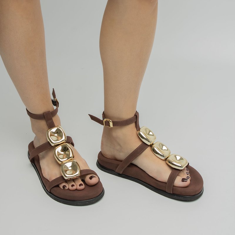 Essa flat incorpora o charme das tiras estrategicamente distribuídas, conferindo estrutura visual e respirabilidade, mas com uma sutileza que garante praticidade no dia a dia.