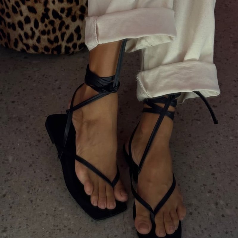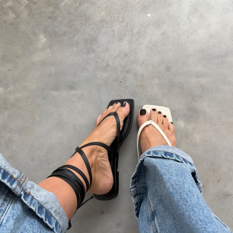 A rasteira de dedo com amarração é o detalhe que faz toda a diferença no look. Leve, fresh e com vibe de verão,