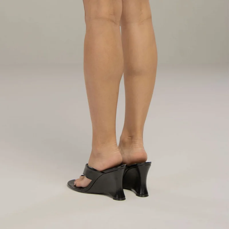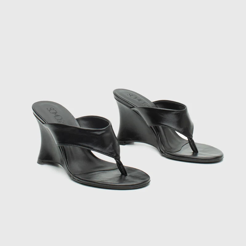O salto curvado em formato moderno adiciona um toque arquitetônico ao visual. Sem enfeites ou excessos, é uma peça versátil que transforma produções básicas em looks sofisticados com ar contemporâneo.